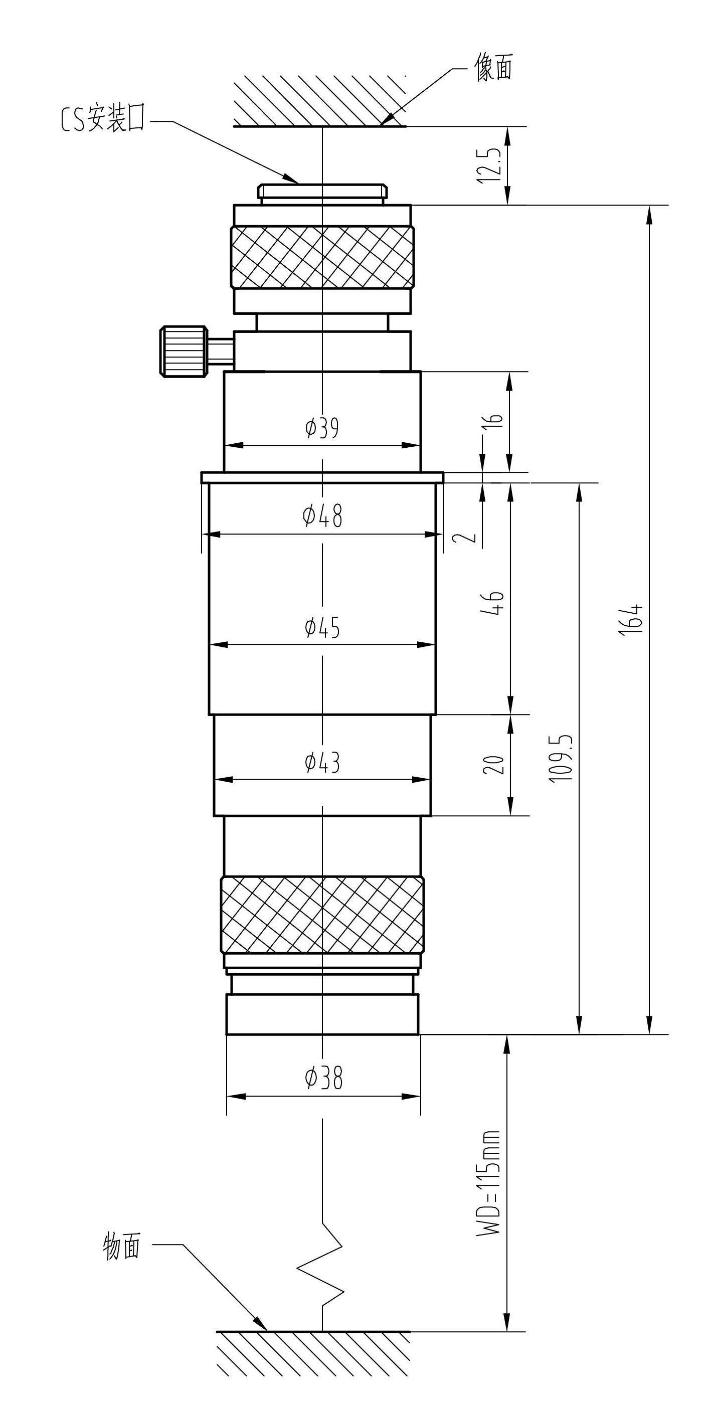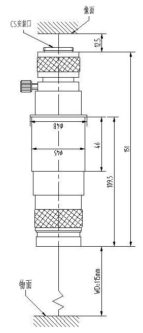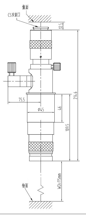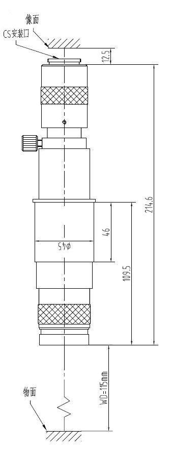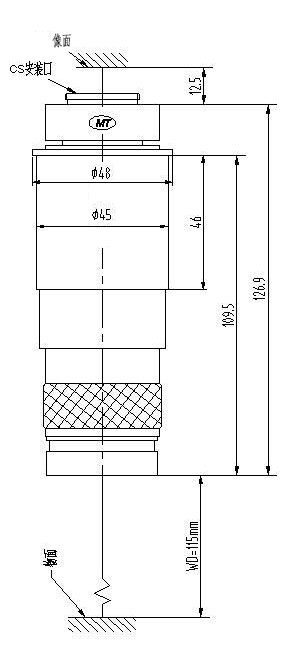 安裝尺寸:Φ45mm 最大兼容相機(jī):1/2" CCD螺紋接口:1英吋32扣