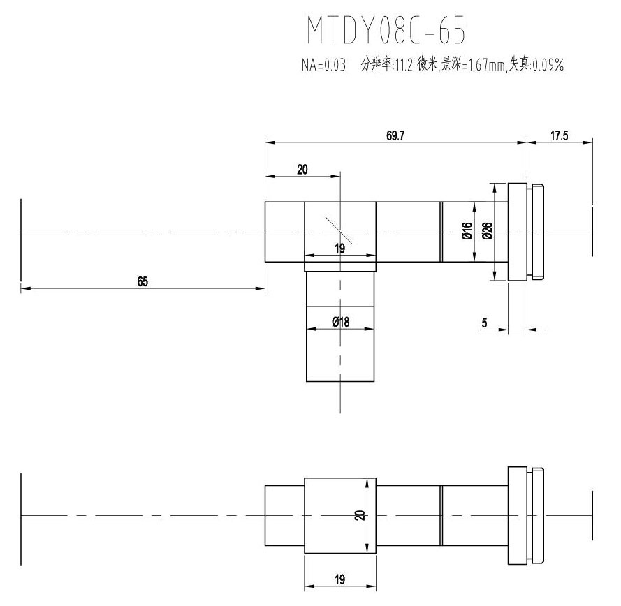 ● 遠心鏡頭用于工業精密測量,畸變極小。高性能的可以達到無畸變。