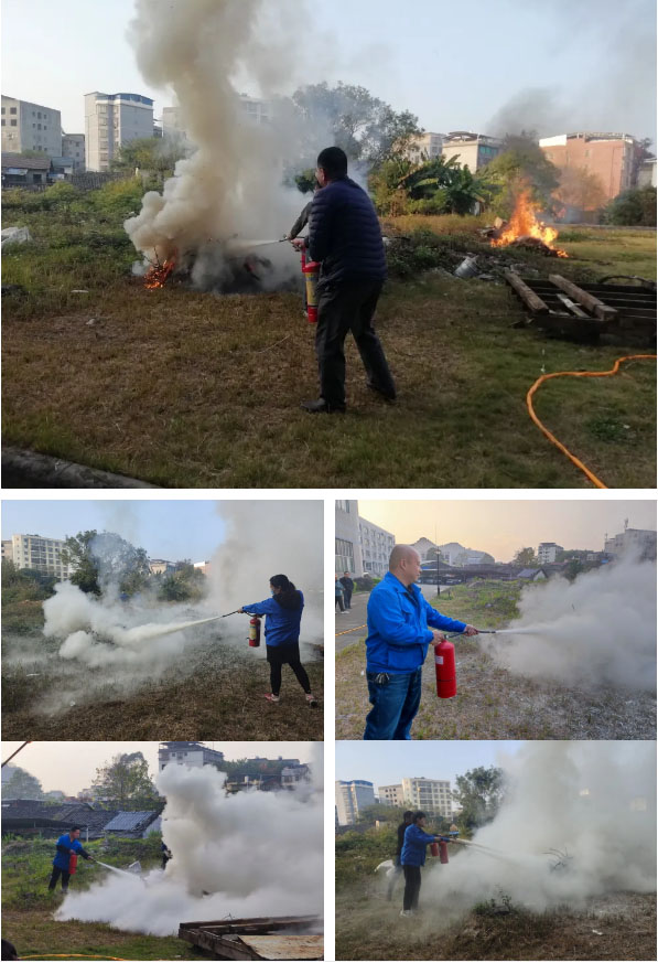 為確保全體員工,特別是新入職員工掌握滅火器材的正確使用及實(shí)際操作能力,同時(shí)不斷提高員工的消防安全意識(shí)及應(yīng)對(duì)火災(zāi)的處置能力,達(dá)到人人會(huì)用、敢用的目的。2021年12月10日下午,公司結(jié)合目前實(shí)際情況,特組織一次滅火器實(shí)操演練。